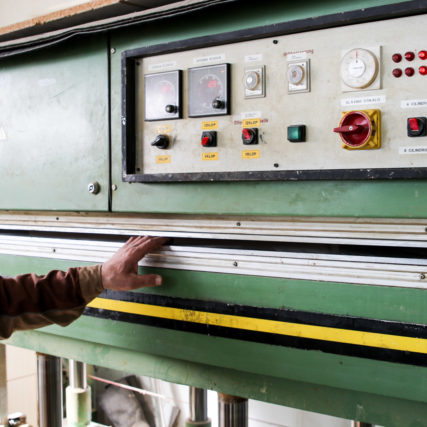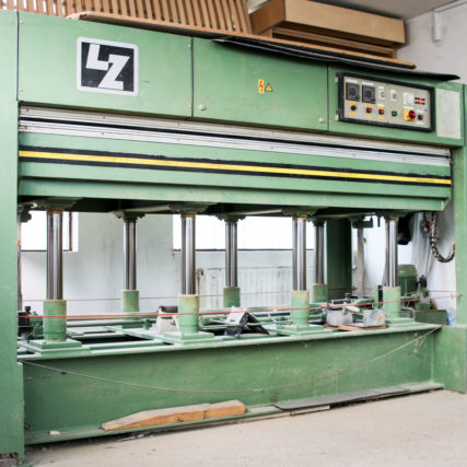 Sila stiskalnice je 140 ton in omogoča vklop 4 ali 8 cilindrov. Omejitve kar se dimenzij tiče so za ploskovno dimenzijo 2075 x 1035 mm in za debelino je omejitev 450 mm. Stiskalnica Langzauner omogoča električno gretje za lepljenje plošč. V Mizarstvu Štefanič jo uporabljamo za izdelavo: vratna krila, furniranje, masivne lepljene plošče.