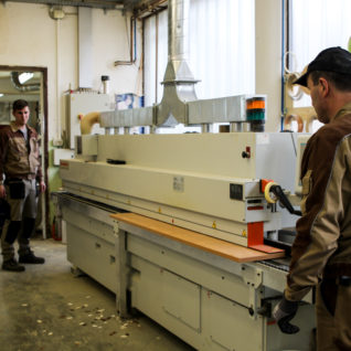 Naša sodobna žaga za razrez iverala omogoča rezanje dveh plošč hkrati, računalniško krmiljenje ter avtomatsko razporeditev rezov.