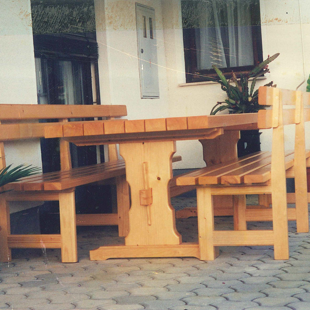 Klasično masivno vrtno pohištvo iz masivnega smrekovega lesa.